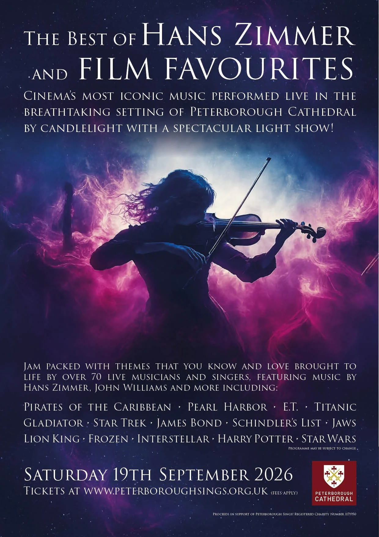 Cinema’s most iconic themes performed live in the breathtaking setting of Peterborough Cathedral, by candlelight with a spectacular light show!